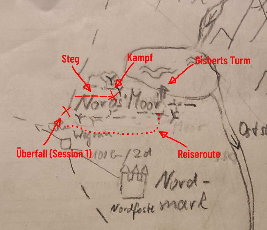 Die Reise am südlichen Rand des Moores dauert 2 Tage und verläuft ereignislos. Als wir ins Moor vordringen